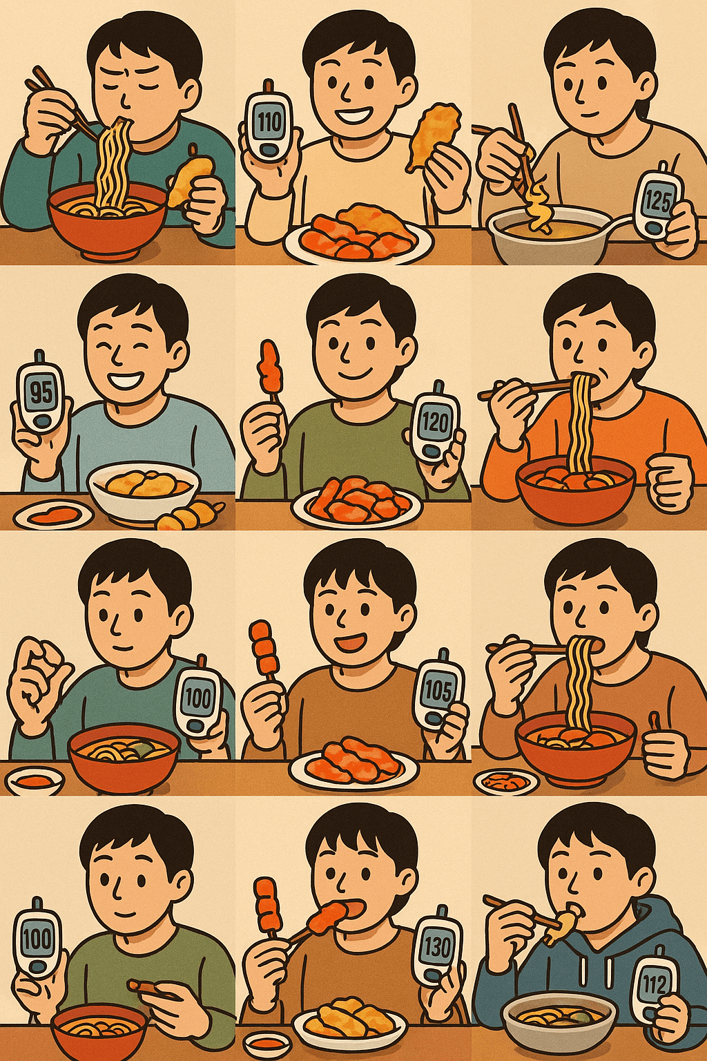 라면과 분식은 우리의 일상 속에서 단순한 음식 이상의 의미를 가지고 있습니다. 친구와의 추억, 혼자 사는 집에서의 외로움을 달래 주던 밤, 시험과 프로젝트를 버티게 해 주던 작은 위로가 이 음식들과 함께 엮여 있습니다. 그렇기 때문에 “이제부터 다시는 먹지 않겠다”라고 선언하는 방식은 대부분 오래가지 못합니다. 잠시 참는 동안은 스스로가 대단해 보이지만, 한 번 무너지는 순간 “역시 나는 안 돼”라는 자기 비난과 함께 예전보다 더 자주, 더 많이 찾게 되는 경우도 많습니다. 혈당과 인슐린 저항성을 관리한다는 것은 이런 극단적인 끊었다–폭발했다의 사이클에서 벗어나, 라면과 분식과의 관계를 재정의하는 과정에 가깝습니다. 이 글에서 살펴본 전략들을 다시 정리해 보면 이렇습니다. 먼저 현재 내가 어느 정도 자주 라면과 분식을 먹는지 솔직하게 파악합니다. 그리고 그 횟수를 한 단계만 줄이는 것부터 시작합니다. 동시에, 한 번 먹을 때의 조합과 양을 조정합니다. 라면에 공깃밥과 튀김, 탄산음료를 모두 붙이는 대신, 단백질과 채소를 늘리고, 국물과 양념의 양을 의식적으로 줄입니다. 면과 떡의 양을 줄이거나 여러 사람이 나눠 먹는 방식으로 포션을 조절하고, 가능한 한 공복보다는 어느 정도 속이 든든한 상태에서 먹으려 노력합니다. 먹고 난 뒤에는 가벼운 걷기나 집안일로 몸을 조금 움직이는 짧은 루틴을 붙여 줍니다. 이 과정에서 가장 중요한 것은, 스스로를 과도하게 비난하지 않는 태도입니다. 어느 날 라면과 떡볶이를 실컷 먹었다고 해서, 그동안의 노력이 모두 무산되는 것은 아닙니다. 혈당과 체중, 건강을 결정하는 것은 하루의 실수가 아니라 전체적인 패턴입니다. 만약 “오늘은 좀 많이 먹었다”라고 느껴진다면, 그 사실을 있는 그대로 인정하고, 다음 식사에서 조금 더 가볍게 선택하는 것으로 균형을 맞추면 됩니다. 마치 가계부에서 하루 지출이 많았던 날이 있어도, 한 달 전체를 망치는 요소는 아닌 것과 같습니다. 장기적으로 보면, 라면과 분식의 자리를 채워 줄 새로운 즐거움을 찾는 것도 중요합니다. 예를 들어 양념을 줄이고 재료의 맛을 살린 국수나 냉면, 구운 고기와 채소를 곁들인 한 끼, 집에서 직접 만들어 보는 간단한 요리 등이 그것입니다. 처음에는 라면만큼 강렬한 만족감을 주지 못할 수 있지만, 몸이 가벼워지고 오후의 피로가 줄어드는 경험이 쌓이면, 자연스럽게 선택의 기준이 달라집니다. 그때가 되면 라면과 분식은 더 이상 “자주 찾는 주식”이 아니라, 가끔씩 즐기는 “기분 전환용 간식” 정도의 위치로 내려오게 됩니다. 결국 목표는 완벽한 식단이 아닙니다. 라면과 분식을 사랑하는 마음을 인정하면서도, 나의 몸과 혈당에 대한 책임을 함께 지는 성숙한 태도를 갖추는 것입니다. 오늘 이후로도 우리는 라면집 앞을 지나칠 것이고, 떡볶이 냄새에 흔들릴 것입니다. 하지만 이제는 예전처럼 무작정 들어가 한껏 먹어 치우는 대신, “오늘은 이 정도까지만”, “다음에는 빈도를 줄여 보자”라고 스스로에게 말할 수 있을 것입니다. 그 작은 차이가, 몇 년 뒤 건강검진 결과와 삶의 에너지에서 분명한 차이로 돌아올 것입니다. 라면과 분식을 완전히 끊지는 않더라도, 이제는 그들과 조금 더 건강한 거리에서 만날 수 있기를 바랍니다.